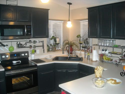 Saving money by not purchasing new cabinets, I splurged on new stainless steel appliances. The refrigerator, stove & microwave. I didn't purchase a new dishwasher. I just changed the front panel to the black side so you hardly notice it's there. (unless it's running, a new one would have been so much quieter!)